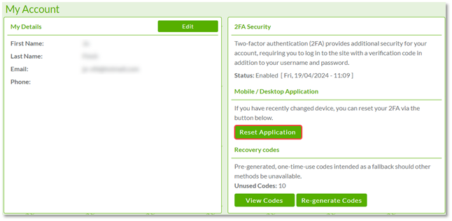 If you have used all your codes, or your existing codes are no longer secure, you can use the ‘Re-generate Codes’ button to generate new codes. This will also disable past codes.