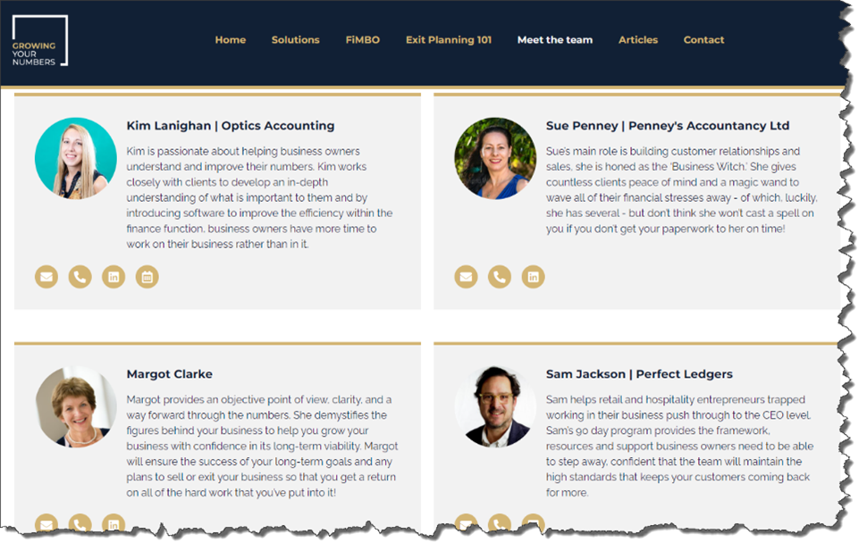 - The GrowingYourNumbers.com website focusing on clients desired outcome, (rather than services).