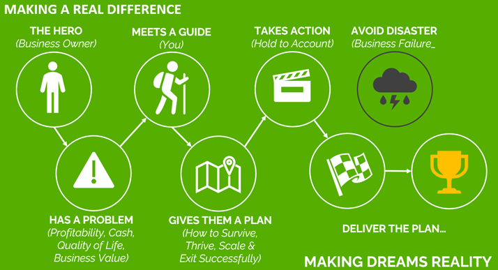 - Convincing potential clients YOU are the best person to solve their ‘financial challenges’ and achieve their business goals. Be that Turnaround and Recovery, Scaling and/or preparing for a successful exit.