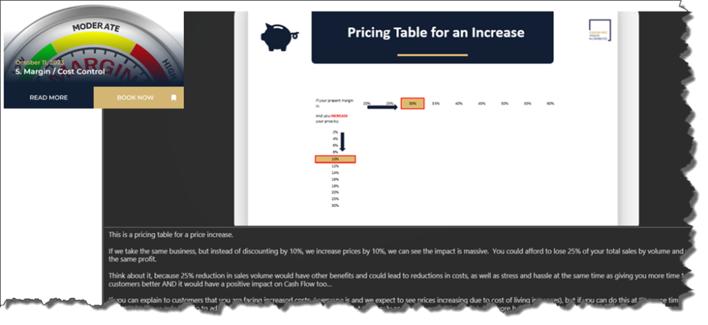 As you work through the process you will learn how to continually identify and realise quick wins, whilst learning a rigorous, repeatable system / process you can apply in yours and your client’s businesses.